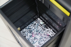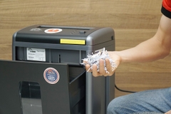 - Trong khi hủy tài liệu không nên mặc quần áo quá rộng, đeo trang sức hay để tay gần lưỡi cắt vì có thể bị máy cuốn vào.
