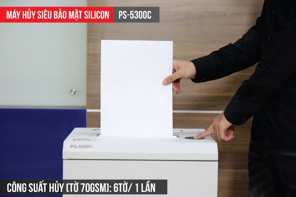 - Máy hủy tài liệu Silicon PS-5300C được thiết kế linh hoạt, tính thẩm mỹ cao, độ ồn thấp, khi sử dụng máy không ảnh hưởng đến năng suất làm việc của con người.