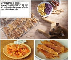 - Sự đa dạng đó có được nhờ dải nhiệt độ và dải thời gian sấy lớn. Từ hoa quả: cam, chuối, xoài, táo, nhãn, nho,… cho đến thực phẩm chế biến: khô gà, khô bò, cá, tôm,… hay các loại dược liệu: lá cây, dễ cây, thuốc bắc,…